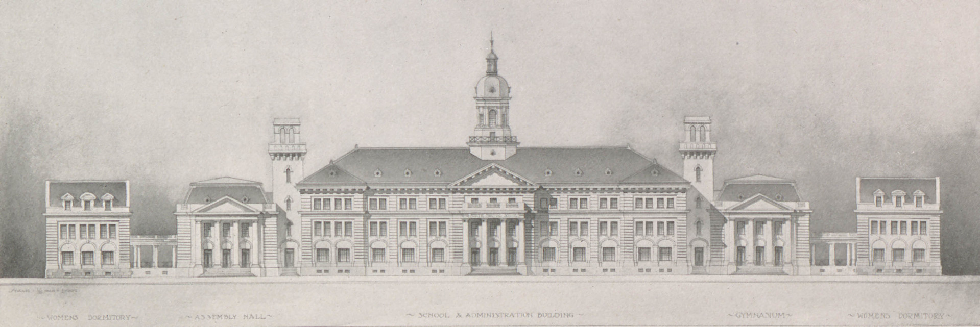 The Commission enacted an architectural competition to plan the new campus, sending invitations to successful architects from the State of Maryland. The competition was won by Parker, Thomas, and Rice of Baltimore, and Charles L. Reeder was selected as the consulting engineer for the construction of the site. Douglas H. Thomas Jr., chief designer of the Belvedere Hotel and the main campus of Johns Hopkins University, became the main architect to consult and work with the Commission. The General Assembly of 1914 also appropriated $225,000 to the Commission to aid with the project. By September 1915, the buildings were completed with Middle English style architecture that incorporated fireproof reinforced concrete construction and the most advanced features of early 1900’s school style architecture. The Maryland State Normal School at Towson was dedicated on November 19, 1915 with a full ceremony that included musical selections along with remarks by Dr. M. Bates Stephens, the State Superintendent of Education, and Principal Richmond.
