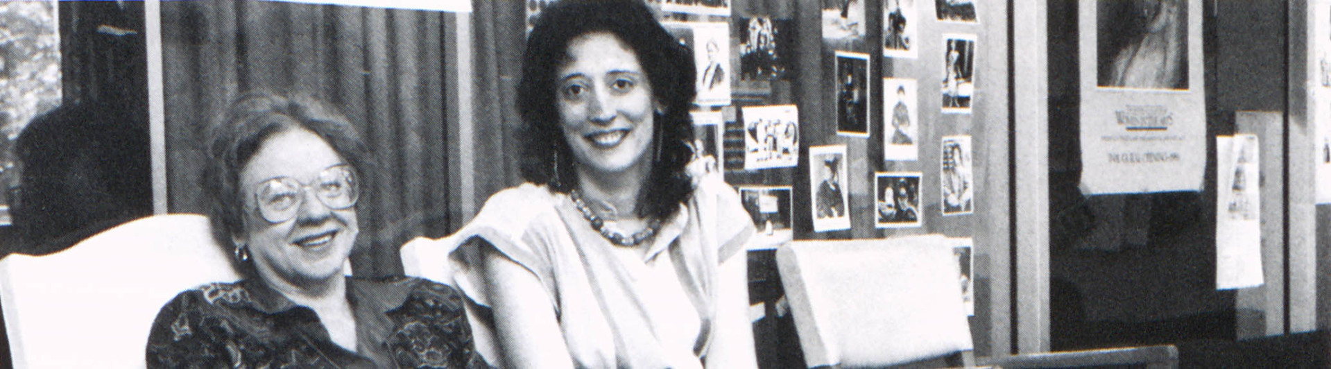 The banner image for this page shows Women's Center Director Leah R. Schofield and Assistant Director Meg Nugent in the Towson Women's Center. This photograph was originally published in the 1990 Tower Echoes yearbook.
